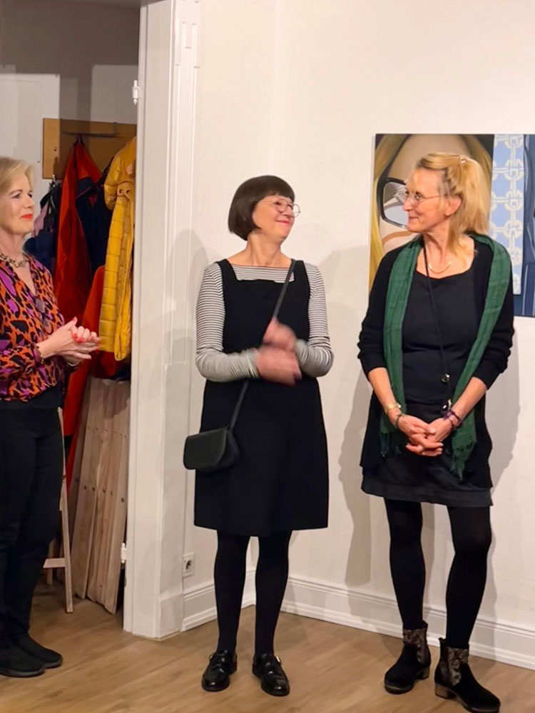 herzlich willkommen zu dieser besonderen Vernissage. Ich freue mich sehr, dass Kathrin Bick-Müller mich gebeten hat, ein paar Worte über ihre Ausstellung ANOUK zu sagen. Denn ich habe ihre künstlerische Entwicklung von den Anfängen bis zu ihren ausgereiften und ausdrucksstarken Werken stets mit großem Interesse verfolgt, fasziniert von der Vielfalt ihrer Sujets und der bemerkenswerten Disziplin, mit der sie ihre Malerei kontinuierlich verfeinert hat, um schließlich dort anzukommen, wo sie heute steht.
